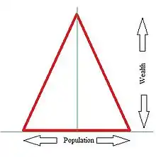 The pyramid is a graphical depiction of inverse relationship between two variables as one increases the other decreases. We find that the percent of world wealth and the percent of world population controlling it are related with each other in an inverse relation. If we plot the world wealth in percent terms along the vertical axis of a graph and the corresponding percent population having control on it on the horizontal axis of a graph and add the mirror image of this graph on the left side of the vertical axis we get a wealth pyramid and can see that as we move to higher and higher wealth brackets we find that fewer and fewer people have access to it, thus the figure has a wide bottom and a lean top similar to the pyramids of Egypt.