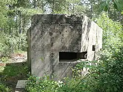 The battery was built from 1937 to 1938 to protect an anchorage on the east side of Yarmouth. It was equipped with two 6-inch Mk VII guns, electric ammunition hoists and two searchlight emplacements nearby. A pillbox was also built to protect the access road,[2] and the battery was manned by the Isle of Wight Rifles.[3] The battery was stood down in December 1942, although it was reactivated with the addition of a Bofors anti-aircraft gun in 1944. The battery was once again stood down in 1945, with all its armaments removed by 1947, but it was re-used for gun practice from 1951 to 1955. British coastal defences were finally abandoned in 1956 and the battery was fully disarmed.