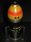 A bourrelet is a portion of an elongated artillery projectile that is used in conjunction with the projectile's driving band, or rotating band, to stabilize its launch by keeping the fore part of the projectile precisely aligned with the gun barrel.[1]