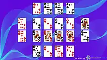 Box Kite is a moderately difficult solitaire game using two decks.[1] The object of the game is to move all of the cards to the foundations.
