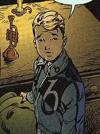 Boy Blue first appears during "Legends in Exile," working as Snow White's office gofer and clerk.[1] He is one of the few people who can get Bufkin, the flying monkey who serves as Fabletown's librarian, to do his work. Blue is one of Fabletown's most skilled musicians; he takes his horn with him everywhere. He occasionally tries to get gigs in Harlem jazz and blues clubs, but is always told that he is too young, too white or "too hayseed". His roommate is Pinocchio; the two of them, along with Flycatcher are best friends. Blue lives a typical "nerdy" lifestyle, avidly reading comic books and playing board games.