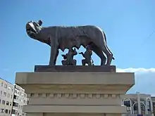 The Brad railway station is listed as a historic monument. The central plaza of Brad features a copy of the Capitoline Wolf, near the Dacian Draco.