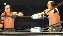 In El Dorado, they were initially members of the Stoned faction. However, in a double betrayal, Takuya Sugawara betrayed both his own faction of Aagan Iisou and Stoned leader Kagetora, taking over the leadership of Stoned and renaming it Hell Demons. The Brahman brothers won the UWA World Trios Championship with Maguro Ooma on 3 June 2006 and later vacated the belts. On 9 August 2007, The Brahman Brothers and Takuya Sugawara defeated Toru Owashi, Kagetora and Hercules Oosenga to win the vacant UWA World Trios Championship for the second time. The Hell Demons first defended the UWA World Trios Championship on 26 August 2007 by defeating Kaientai Dojo's Yuji Hino, Makoto Oishi and Shiori Asahi. The Hell Demons next defended the UWA World Trios Championship on 29 December 2007 by defeating brother Yasshi, Jumping Kid Okimoto and Dick Togo in a ladder match. At the end of the match Shu and Kei kicked Sugawara out of Hell Demons vacating The UWA World Trios Championship. Shu and Kei are currently the co-leaders of the Hell Demons. On 3 December 2008 the Brahman brothers won the UWA World Tag Team Championship from Tsutomu Oosugi and Hercules Oosenga. Shu and Kei beat The Great Sasuke and Yoshitsune on 18 January 2009 to win the Tohoku Tag Team Championship for the 3rd time and successfully defend the UWA World Tag Team Championship in a double title match. The Sato brothers are the first and only tag team to hold the UWA World Tag Team Championship and Tohoku Tag Team Championship at the same time. Shu and Kei lost the Tohoku Tag Team Championship on 15 March 2009 to Kesen Numajiro and Kinya Oyanagi. Shu and Kei have also been competing in Apache Pro-Wrestling making their first appearance on 19 February 2009 winning a match vs Takashi Sasaki and Jun Kasai and also on 16 March 2009 teaming up with Ken45° to take on Takashi Sasaki and Masashi Takeda in a Handicap Match Shu Kei and Ken45° got the win over Sasaki and Takeda the 2 matches were Apache Rules matches. Shu and Kei returned to Apache pro on 17 April 2009 to face the team of Takashi Sasaki and Tetsuhiro Kuroda Shu and Kei lost the match when Sasaki beat Kei. Shu and Kei won the WEW Hardcore Tag Team Championship on 6 May 2009 from Kaientai Dojo's Yoshiya and Hardcore Kid Kojiro. Shu and Kei defended the WEW Hardcore Tag Team Championship on 9 June 2009 in a three-way match defeating JOE and Quiet Storm and Daigoro Kashiwa and Psycho. On 26 August 2009 Shu and Kei successfully defended the UWA World Tag Team Championship vs Takuya Sugawara and Minoru Fujita. On 23 September 2009 Shu and Kei successfully defended the WEW Hardcore Tag Team Championship vs the team of Taishi Takizawa and Hiro Tonai. Shu and Kei will challenge Takeshi Minamino and Maguro Ooma on 13 February 2010 for the Tohoku Tag Team Championship. On December 27, 2012, the Brahmans made their debut for Wrestling New Classic (WNC), defeating Jiro Kuroshio and Yoshiaki Yago in a Hair vs. Hair Tables, Ladders, and Chairs match, forcing Kuroshio to have his head shaved.[3][4] On May 5, 2014, Shu won his first singles title, when he defeated Manjimaru in a tournament final for the vacant Tohoku Junior Heavyweight Championship. On June 8, Kei and The Great Sasuke won the Tohoku Tag Team Championship. In 2015, the Brahmans began working for the Pro Wrestling Freedoms (Freedoms) promotion under masks and the ring names El Hijo del Winger Uno and El Hijo del Winger Dos, winning the King of Freedom World Tag Team Championship on January 29, 2015.[5] On June 17, 2015, the Brahman Brothers won the UWA World Tag Team Championship for the second time, this time in the Union Pro Wrestling (Union Pro) promotion.[6]