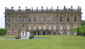 The architect William Talman has also been suggested as a possible architect, and he was indeed working on Chatsworth House some sixty miles away from Bramham at this time. However, unlike Chatsworth (which is far larger), Bramham is given flanking wings more in the Palladian style, linked to the house by short colonnades. The flanking wings contained the kitchen in the south wing, and the chapel in the north, thus – as at the Baroque Blenheim Palace – balancing both spiritual and bodily needs equally. However, while Campbell's drawing of Bramham show the never-executed statuary on the roof and near-perfect proportions, the reality of the executed design suggests a less professional hand than Talman's. Two low projecting wings from the corps de logis complicate the design, while the two colonnades are not quite long enough to give the flanking wings the independence from the main house to allow their design to be fully appreciated.