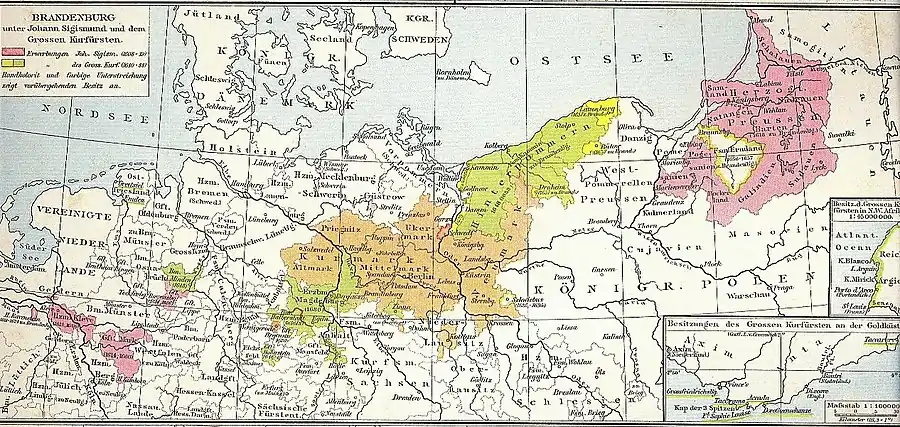 ![]() Brandenburg-Prussia within and outside of the Holy Roman Empire (1618) | |