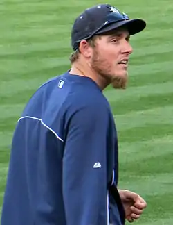 In spring training in 2013, Maurer competed with Erasmo Ramírez, Jeremy Bonderman, and Blake Beavan for one of the final two spots in the Mariners' five-man starting rotation, behind Félix Hernández, Hisashi Iwakuma, and Joe Saunders.[12][13] Allowing only two runs in 20 innings with 22 strikeouts and six walks in the Cactus League, Maurer made the Mariners' 25-man roster as a starting pitcher, skipping the Class AAA level. Maurer became the first member of the Mariners' 2008 draft class to reach the major leagues[12] and the first starting pitcher to skip Class AAA and debut for the Mariners since John Cummings and Mike Hampton in 1993. He reached MLB before more heralded prospects, such as Walker, Hultzen, and James Paxton.[14] In his major league debut, on April 4, he allowed six runs in six innings to the Oakland Athletics, including on home runs by Yoenis Céspedes and Josh Reddick, in a loss.[15] After a second poor performance, Maurer earned his first win in his third start, on April 14.[16]