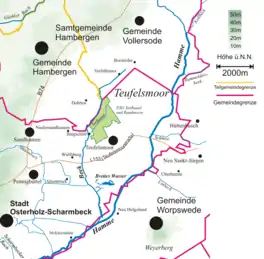 A nature reserve of the same name lies around the lake between Worpswede and the village of Teufelsmoor. The lake is situated at the confluence of the Beek and the Hamme about 2 km downstream of Beek.