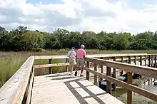 Brevard County works together with the federal and state government to control pollution and preserve wetlands and coastal areas through lands dedicated to conservation and wildlife protection. There are 250 square miles (650 km2) of federally protected wildlife refuges.[47] These lands include Merritt Island National Wildlife Refuge, the Canaveral National Seashore, the St. Johns National Wildlife Refuge, the Archie Carr National Wildlife Refuge, several conservation areas managed by the St. Johns River Water Management District, Brevard County's Environmentally Endangered Lands Program Sanctuaries,[48] and lands dedicated by the State as conservation areas.