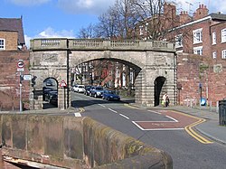 Bridgegate in Chester, Cheshire, England, forms part of the city walls. It is recorded in the National Heritage List for England as a designated Grade I listed building.[1]