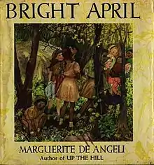 Bright April is a 1946 children's story book written and illustrated by Marguerite de Angeli, who later won the 1950 Newbery Medal for excellence in American children's literature for The Door in the Wall. Bright April is a story about a young African-American girl named April who experiences racial prejudice; it is also the story of her bright personality and her tenth birthday and the surprise it brought. The story is set in the Germantown neighborhood of Philadelphia, Pennsylvania, and the scenery portrayed in the author's illustrations can be recognized even today.