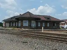 By 1968, candidates were appealing to the electorate through television, rather than through whistle-stop train tours.[4] Nevertheless, Nixon had included them in his past national campaigns—he had broken off one such tour in 1952 to make the Checkers speech,[5] and in 1960, had stopped at Deshler. The rural Ohio village, about 45 miles (72 km) southwest of Toledo, was popular among whistle-stopping presidential candidates as two main lines of the Baltimore & Ohio Railroad crossed there—other visitors in search of votes had included Al Smith, Harry Truman, and Barry Goldwater.[6] Deshler voters would respond in 1968 by giving Nixon an overwhelming majority of their votes.[7]