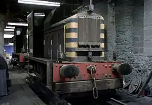D2954 and D2955 survived in BR service because they were required to service the Holyhead Breakwater, being the only locomotives light enough for that track, the pair were used by William Wild & Sons Ltd.[4] They were renumbered 01001 and 01002 under TOPS. 01001 was not used after 1973 but was cannibalised for spare parts to keep its sister loco in service. 01001 was withdrawn in 1979, and 01002 followed in 1981. 01002 had last run when the Breakwater Railway closed in July 1980. Both locomotives were cut up on site still carrying their original livery of British Railways black with black-and-yellow "wasp stripe" warning ends and the original British Railways "unicycling lion" emblem; they were the last locomotives in BR service to do so.