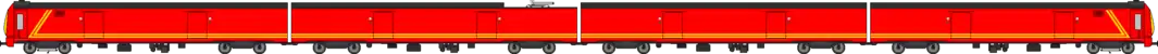 The trains are fitted with large round oleo buffers, and have no gangways between carriages. Each set is made up of four cars, with roller doors in place of sliding ones and no windows. Each car has two roller shutter sliding doors on each side and is designed to hold up to 12 tonnes. They have a Brecknell Willis high speed pantograph to pick up power from the 25 kV AC overhead lines,[1] and also a shoe to pick up power off the 750 V DC third rail. They cannot work in multiple with any other multiple unit stock, but are fitted with drop-head buck-eye coupling and can therefore be hauled by locomotives. The units were built in such a way that they could easily be converted for passenger use if no longer required for mail services.