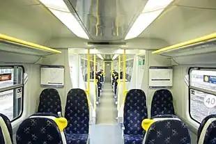 From early 2015, Eversholt commissioned Alstom to perform an extensive £36.1m overhaul of the entire fleet to improve passenger conditions, which included the retrofitting of full air conditioning, at-seat charging points, provision for wi-fi, passenger counting equipment, cycle spaces, LED lighting and CCTV in the saloons, and an upgraded CCTV system for driver-only operation.[6][7][8] Improvements were also made to the reliability of the passenger doors, and the original Tightlock couplings were replaced with Scharfenberg-type automatic couplers manufactured by Voith, allowing Class 334 units to rescue and be rescued by Class 380 units. The overhaul process was completed in 2017.