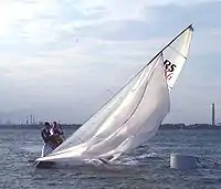 Broaching caused by wind action may occur when a vessel is sailing away from the wind and its sails are suddenly overpowered by a gust of wind, causing it to heel excessively. Heeling alters the rudder's orientation, away from vertical, reducing the horizontal force which water can apply as it flows past the rudder. In extreme cases, heeling can raise the rudder out of the water. With loss of directional control, the vessel turns into the wind.[2] In the process, the vessel may heel close to horizontal and may capsize.[3] Such loss of control may be preceded by oscillations of the vessel's mast and course, as the person steering attempts to maintain control.[2]