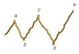 In the figure above, price of the share reverses five times, reversal point d is made at a lower point than reversal point b and reversal point c and e occur successively higher than reversal point a.