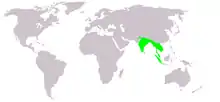 The species is widely distributed across the Indian Subcontinent (but not Sri Lanka or western Pakistan) and Southeast Asia mainly in low elevations. Both this species and the pheasant-tailed jacana can occur in the same habitat. It is sedentary apart from seasonal dispersal in response to drought and rains.[19] They are able to use wetlands covered in introduced weeds such as water hyacinth and make use of the cover provided by Ipomoea aquatica when breeding.[23]