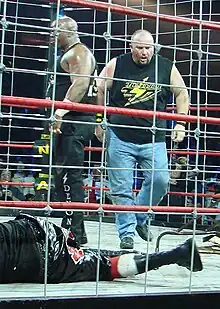 During Team 3D's retirement ceremony on the following episode of Impact!, Ray turned heel by attacking Devon, reigniting the feud between the two.[39] The following week Ray claimed that Devon had gotten weak, since Chris Sabin had managed to kick out of a 3D at Turning Point, calling him the Marty Jannetty and himself the Shawn Michaels of the team.[40] On the December 16 episode of Impact! LoMonaco renamed himself Bully Ray as he defeated Amazing Red in a squash match.[41] On January 9, 2011, at Genesis, Ray defeated Devon via disqualification, after Devon hit his former partner with his own chain.[42] In the following weeks Devon's sons Terrence and Terrell began making appearances on Impact! and were regularly abused by Ray.[43][44] At Against All Odds Ray faced his former tag team partner in a Street Fight. After Devon's sons interfered in the match, Ray low-blowed him and pinned one of his sons for the win.[45] On March 13 at Victory Road, Devon and his sons interfered in a Falls Count Anywhere match between Ray and Tommy Dreamer, costing Ray the match.[46] On the following episode of Impact!, Ray's feud with Devon was abruptly ended as he aligned himself with Immortal and moved on to feuding with Fortune. At the show's end, Ray powerbombed A.J. Styles off the entrance stage through a table, sidelining him with a storyline injury.[47][48] On April 17 at Lockdown, Immortal, represented by Ray, Abyss, Matt Hardy and Ric Flair, was defeated by Fortune members James Storm, Kazarian and Robert Roode and Christopher Daniels, who replaced A.J. Styles, in a Lethal Lockdown match. During the match Styles made his return, attacking Ray as he was beating Daniels.[49] On the April 28 episode of Impact!, Ray challenged Sting for the TNA World Heavyweight Championship, but was defeated following interference from Styles.[50] Ray then recruited Tommy Dreamer as his partner and helped him defeat Styles at Sacrifice.[51][52] On the May 26 episode of Impact Wrestling, Styles and Daniels defeated Ray and Dreamer in a No Disqualification Street Fight.[53] On June 12 at Slammiversary IX, Ray defeated Styles in a Last Man Standing match to win the feud.[54] After the match Ray, though still retaining his status as a heel, put over Styles' resilience.[55]