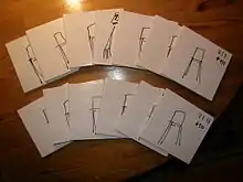 Buckethead performs wearing a KFC bucket on his head, emblazoned with an orange bumper sticker reading FUNERAL in block letters, and an expressionless plain white mask inspired by Halloween 4: The Return of Michael Myers.[4] At one point, he changed to a plain white bucket without a KFC logo, but subsequently reverted to his emblematic KFC bucket without the funeral sticker. He also incorporates nunchaku and robot dancing into his stage performances.[5][6][7]