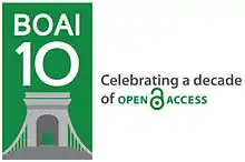 The Budapest Open Access Initiative (BOAI) is a public statement of principles relating to open access to the research literature,[1] which was released to the public on February 14, 2002.[2] It arose from a conference convened in Budapest by the Open Society Institute on December 1–2, 2001 to promote open access which at that time was also known as Free Online Scholarship.[3][4] This small gathering of individuals has been recognised as one of the major defining events of the open access movement.[1] As of 2021, the text of the initiative had been translated to 13 languages.[5]