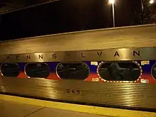 The Budd Silverliner was a model of electric multiple unit railcar designed and built by the Budd Company with 59 examples being delivered starting in 1963. Fifty-five of the cars were purchased for the Reading and Pennsylvania Railroads with public funds for use in Philadelphia, Pennsylvania, area commuter rail service with the remaining 4 cars being purchased by USDOT for use in high-speed rail experiments in 1965. Based on a series of 6 prototype Pioneer III cars built in 1958, the Silverliners represented the first production order of "modern" commuter MU equipment purchased by either railroad and earned their name from their unpainted stainless steel construction which contrasted with the painted carbon steel bodies of the pre-war MU fleets.[1] The cars became a fixture of SEPTA Regional Rail service providing the name to their entire series of EMU railcars before finally being retired in 2012 after 49 years in service.
