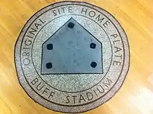 Before Buff Stadium, baseball teams in Houston played at West End Park from 1905 until 1928; Buff Stadium was built on the East End of Houston.[5] West End Park was located at the southeast corner of Andrews and Heiner Streets, on the southwest edge of present-day downtown.[6] Home plate's specific location, until 2013, was commemorated by a plaque in the Houston Sports Hall of Fame, which comprised part of the Finger Furniture Store.