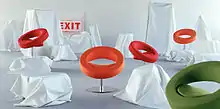 Busk + Hertzog was founded in 2000 by Flemming Busk and Stephan Hertzog.[6] Busk is a master in architecture and design from the School of Architecture in Aarhus, Denmark and Hertzog had experience in the textile industry.[3] They met in Aarhus and have been designing together ever since. In the early years, Busk worked as the designer and Hertzog worked on the business side of the team. Over the years, both have come to influence all aspects of the team.[2] In 2010, the team moved to London in order to find new inspiration for their designs.[3][7] In 2008 they were awarded the "Furniture Prize" at the Danish Museum of Art and Design in Copenhagen by the furniture industry in Denmark. The Furniture Prize was instituted by the Foundation of the Association of Furniture Manufacturers in 1969 ”.... to support and encourage initiative and efforts, made to promote design development, research and technical development for the Danish furniture industry...” as it says in the instrument of foundation. The prize was awarded for the first time in 1970 – and was awarded for the last time in 2009 - to The Danish Design Museum.[8] Among the previous prize recipients are prominent design icons such as Arne Jacobsen, Hans J. Wegner, Børge Mogensen og Poul Kjærholm.[9][10][11]