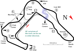 Buttonwillow Raceway Park is a motorsports park in Kern County, California, 10 mi (16 km) north of the town of Buttonwillow and 28 mi (45 km) northwest of Bakersfield. Opened in 1995, it is owned and operated by the California Sports Car Club, a region of SCCA, Buttonwillow is the "flagship" track of Cal Club, and is also the location of the Club's administrative offices.