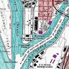 The United States Geological Survey's (USGS) most recent topographic maps identify the tip of the peninsula that contains Fort McNair as "Greenleaf Point".[11] The USGS maps also identify a lesser point to the northeast of Greenleaf Point as "Buzzard Point".[11] (James Creek, which was excavated during the 19th century to become a branch of the [now defunct] Washington City Canal, once separated these two points. Its name persists in the present-day James Creek Marina, located between the two named points. In early times, James Creek was also known as St. James Creek.)