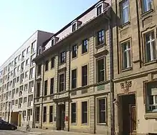 Nearby the Sperlingsgasse branches off, where the novelist Wilhelm Raabe lived from 1854 to 1856 and published his popular work Die Chronik der Sperlingsgasse. The small alley, at this time the Spreegasse, was renamed in 1931 on occasion of the author's hundredth anniversary. All former buildings on this street were demolished about 1960.