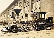 C. P. Huntington was originally purchased by Central Pacific Railroad (CP) in 1863 as that railroad's number 3, along with its sister engine T. D. Judah (CP no. 4). It was CP's third locomotive after Gov. Stanford (number 1, built by Norris Locomotive Works) and Pacific (number 2, built by Mason Machine Works). The locomotive is named in honor of Collis P. Huntington, the third president of the Southern Pacific Company (parent company of Southern Pacific Railroad).[1] CP used the locomotive beginning on April 15, 1864, during construction of the western portion of the First transcontinental railroad in North America.