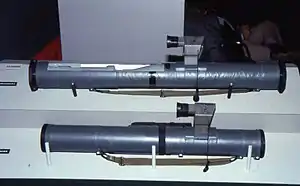 The Instalaza C90 is a 90 mm disposable, shoulder-fired and one-man operated rocket-propelled grenade launcher (RPG) which can be fitted with a VN38-C night vision device for full night combat capability.[7] It is being used as an infantry-type weapon, with Instalaza also claiming it to be the, "lightest infantry weapons system in its class".[6][8]