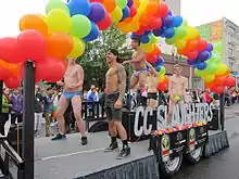 The bar has hosted "Ladies' Night" on Tuesdays and drag shows on Sundays, plus many events throughout the year.[5][6] It hosted an annual block party during the summer and a "Platinum Ball" on New Year's Eve.[7][8] In 2011, CC Slaughters served as a gathering point for a demonstration called "We Are Not Afraid", which was organized by the Oregon State Gay Pride Organization and attracted an estimated 400 people.[9][10] The business has participated in Portland's pride parade, organized by Pride Northwest.[11]
