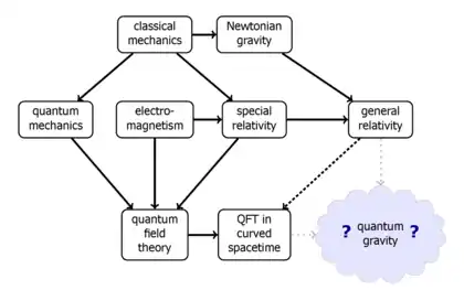 - Theory of everything, or relativistic quantum gravity (c, G, h)
