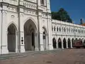 A five-storey spire flanked by flying buttresses marks the entrance to the chapel. The 648 capitals on the columns of the chapel and its corridors each bear a unique impression of tropical flora and birds.