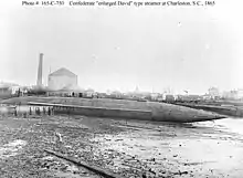 "David" came to be the generic term for any torpedo boat resembling this David.[1] An unknown number of torpedo boats of the David-type were built for and operated by the CSN.[1] When Federal forces captured Charleston in February 1865, they found, incomplete, a much larger David, with a length of about 160 ft (49 m) and designed as a cargo-carrying blockade-runner.[7] This vessel was taken to Washington DC.[7]
