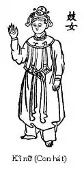 Ca trù (Vietnamese: [kaː ʈû], 歌籌, "tally card songs"), also known as hát cô đầu or hát nói, is a Vietnamese genre of musical storytelling performed by a featuring female vocalist, with origins in northern Vietnam.[1] For much of its history, it was associated with a pansori-like form of entertainment, which combined entertaining wealthy people as well as performing religious songs for the royal court.[2][3]