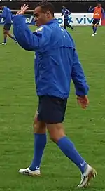 Cafu was accused along with several other Serie A players, including Roma teammate Fábio Júnior and Gustavo Bartelt, countryman and later Milan teammate Dida, of using a forged passport in their attempt to dodge regulations regarding the number of non-European players allowed on Italian club rosters. However, the charge was cleared by the Italian Football Federation (FIGC) as Cafu's Italian passport was real and issued by Italian officials, but 13 others – including Dida – were banned.[20] But Cafu faced another controversy that similar to Juan Sebastián Verón, accused that Cafu's wife, Regina used falsified documents to claim Italian nationality through Italian descent.[21] Cafu acquired Italian nationality through marriage. In 2004, Cafu and Roma club president Franco Sensi went to court.[22][23]