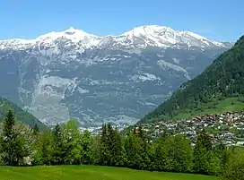 The Calanda is a mountain (more precisely, a massif) in the Glarus Alps with two main peaks: Haldensteiner Calanda (2805 m) and Felsberger Calanda (2697 m), both located on the border between the cantons of St. Gallen and Graubünden in eastern Switzerland. It looms over Chur, the capital city of Graubünden.