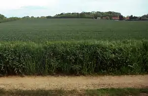 The name Calenberg clearly indicates that the chalk marl stratum was not tree-covered, but stood proud of the Leine meadows as a "bare hill". The river terrace of the Leine had, in former times, laid down gravel to the north and south of the chalk marl step, that was later covered with loess and river loam (Auelehm). The builders of the water castle used this gravel, loess and loam to build the ramparts.[3] Stone for the foundation walls and fortifications of Calenberg Castle were extracted from a quarry on the north side of the Calenberg, which was used until the second half of the twentieth century as a rubbish tip and then covered with topsoil.