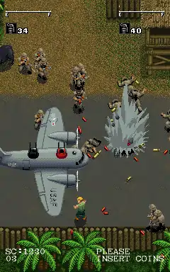 Players control a United States Air Force pilot who was taken as a prisoner of war in Vietnam in 1972. The pilot must escape the prison compound by battling enemy soldiers with guns and grenades. Various power-ups are available that give the player use of various other weapons including a machine gun and flamethrower. Enemy vehicles such as a plane can also be commandeered.[3]