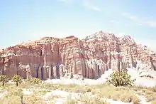 The character of the highway changes as it leaves California City with the last interchange located at California City Boulevard. Now a divided highway with at-grade intersections, departs the corridor of the rail main, to follow the crest of the forming Sierra Nevada mountains. The route continues to follow a branch line of the Union Pacific Railroad used as a connector for the Trona Railway. The main line of the railroad proceeds towards the Central Valley via Tehachapi Pass. Though SR 14 heads away from the pass, the highway has views of the mountains and the Tehachapi Pass Wind Farm. The scenery also changes, as the highway departs the Mojave Desert and crosses Red Rock Canyon State Park. Traffic counts drop dramatically as the highway becomes more rural, with an AADT of 3,200 vehicles at the northern terminus.[7] SR 14 continues north toward US 395 in Inyokern, much of its routing as an expressway. Towards its northern terminus, SR 14 runs briefly concurrently with SR 178. At its northern terminus, SR 14 merges with US 395 as it turns into an expressway heading north to Bishop. As US 395 the route continues to follow the crest of the Sierra Nevada, serving Owens Valley, Mammoth Mountain, Yosemite National Park and Mono Lake.[10]