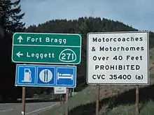 State Route 271 (SR 271) is a state highway in the U.S. state of California that runs along a former routing of U.S. Route 101 (US 101) in Mendocino and Humboldt counties. It also connects with State Route 1 just before that route's terminus with US 101 in Leggett. After US 101 was realigned, SR 271 was reduced to being a frontage road in discontinuous segments. While US 101 stays mostly in second growth redwoods, SR 271 is used as a scenic alternate through several old growth redwood groves.