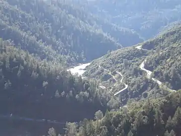 SR 49 is part of the California Freeway and Expressway System,[7] and from SR 140 to a point north of SR 88 as well as from I-80 to SR 20 is part of the National Highway System,[8] a network of highways that are considered essential to the country's economy, defense, and mobility by the Federal Highway Administration.[9] SR 49 is eligible to be included in the State Scenic Highway System,[10] and from the Sierra-Yuba county line to Yuba Summit is officially designated as a scenic highway by the California Department of Transportation.[11] The segment of SR 49 from SR 20 in Nevada City to SR 89 in Sierraville also forms part of the Yuba-Donner Scenic Byway, a National Forest Scenic Byway.[12]