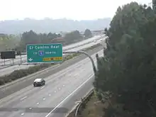 Planning for SR 56 started in 1956, according to San Diego Councilwoman Barbara Warden.[7] The route was first added to the California State Highway System in 1959 as Legislative Route Number 278 (LRN 278). The routing ran from LRN 2, which later became US 101, all the way east to LRN 198, which is now SR 67.[8] In the 1964 state highway renumbering, LRN 278 was renumbered SR 56 and was designated to run from I-5 to SR 67.[9] On December 30, 1980, the City of Poway included SR 56 in their city plan extending all the way east through the city to a northern extension of SR 125.[10] In 1983, both the cities of San Diego and Poway supported the extension of SR 56 all the way to SR 67, although Poway wanted the route moved and had reservations about the freeway ending in their city.[11] Nevertheless, as of 2014 there are no plans to construct the portion of SR 56 east of I-15;[12] several arterial roads connect the eastern end of the SR 56 freeway with SR 67, including Ted Williams Parkway, Twin Peaks Road, Espola Road (CR S5), and Poway Road (CR S4).[2]