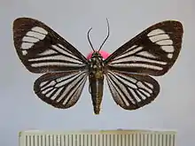 - Toulgoët, Hervé de & Navatte, Jocelyne (2000). "Calodesma uraneides (Butler, 1871)". Illustrated Catalogue of the Arctiidae Arctiinae and Pericopinae of French Guyana Found in the Collection of the Museum National d'Histoire Naturelle in Paris. Retrieved September 12, 2019.