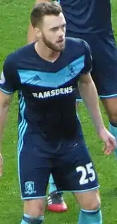 On 30 August 2016, Chambers joined fellow Premier League team Middlesbrough on a season-long loan.[32] On 24 September 2016, he made his debut in a 2–1 defeat against Tottenham in the league.[33][34] On 30 April 2017, he scored his only goal for the club in a 2–2 draw against Manchester City.[35] Prior to his return to Arsenal, Chambers was a key figure on the team and made a total of 26 appearances for Middlesbrough.[33]