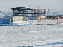 Cambridge Bay was chosen after a feasibility study that also included Pond Inlet and Resolute as potential locations.[55] Prime Minister Harper announced that, starting in 2012, the Government of Canada would spend $142.4 million over a six-year period to build, equip and provision the station. Additionally, again starting in 2012 and spread over six years, the government would provide $46.2 million for the CHARS Science and Technology Program.[56] The prime minister stated that to provide for the continuing research and operations $26.5 million per year, beginning in 2018–19, would be made available.[57] It is expected that the station will provide 35 to 50 jobs. These jobs, which will be full-time, part-time and seasonal, will start in 2017 and run the Science and Technology Program as well as provide the day-to-day operations of the station. In addition it is expected that 150 jobs will be created during construction for local and other people throughout the north. However, some of these jobs will require the hiring of specialised people from southern locales.[58] Construction began in August 2014.[59]