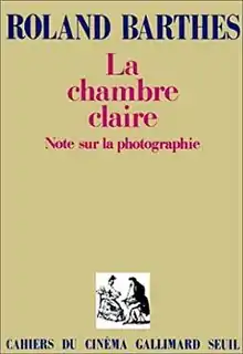 Camera Lucida: Reflections on Photography (French: La Chambre claire) is a short book published in 1980 by the French literary theorist and philosopher Roland Barthes. It is simultaneously an inquiry into the nature and essence of photography and a eulogy to Barthes' late mother. The book investigates the effects of photography on the spectator (as distinct from the photographer, and also from the object photographed, which Barthes calls the "spectrum").