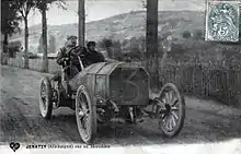 Camille Jenatzy (1868, Schaerbeek – 8 December 1913, Habay la Neuve) was a Belgian race car driver. He is known for breaking the land speed record three times and being the first man to break the 100 km/h barrier. He was nicknamed Le Diable Rouge ("The Red Devil") after the colour of his beard.[1]